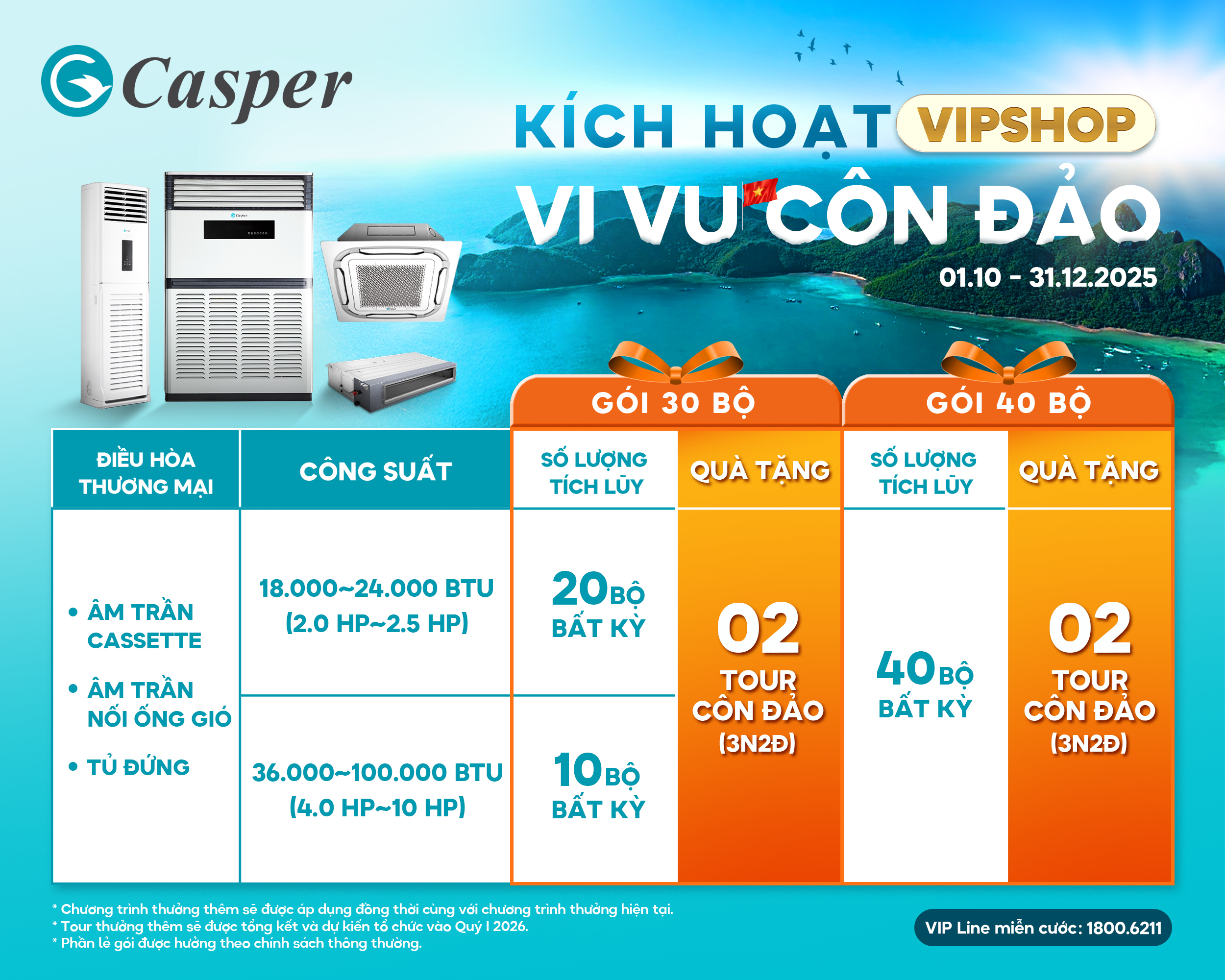 Casper Vietnam xin gửi tới quý khách hàng thông tin chương trình kích hoạt bán hàng thưởng tour trải nghiệm Côn Đảo 3 ngày 2 đêm, áp dụng đối với ngành Điều hoà thương mại