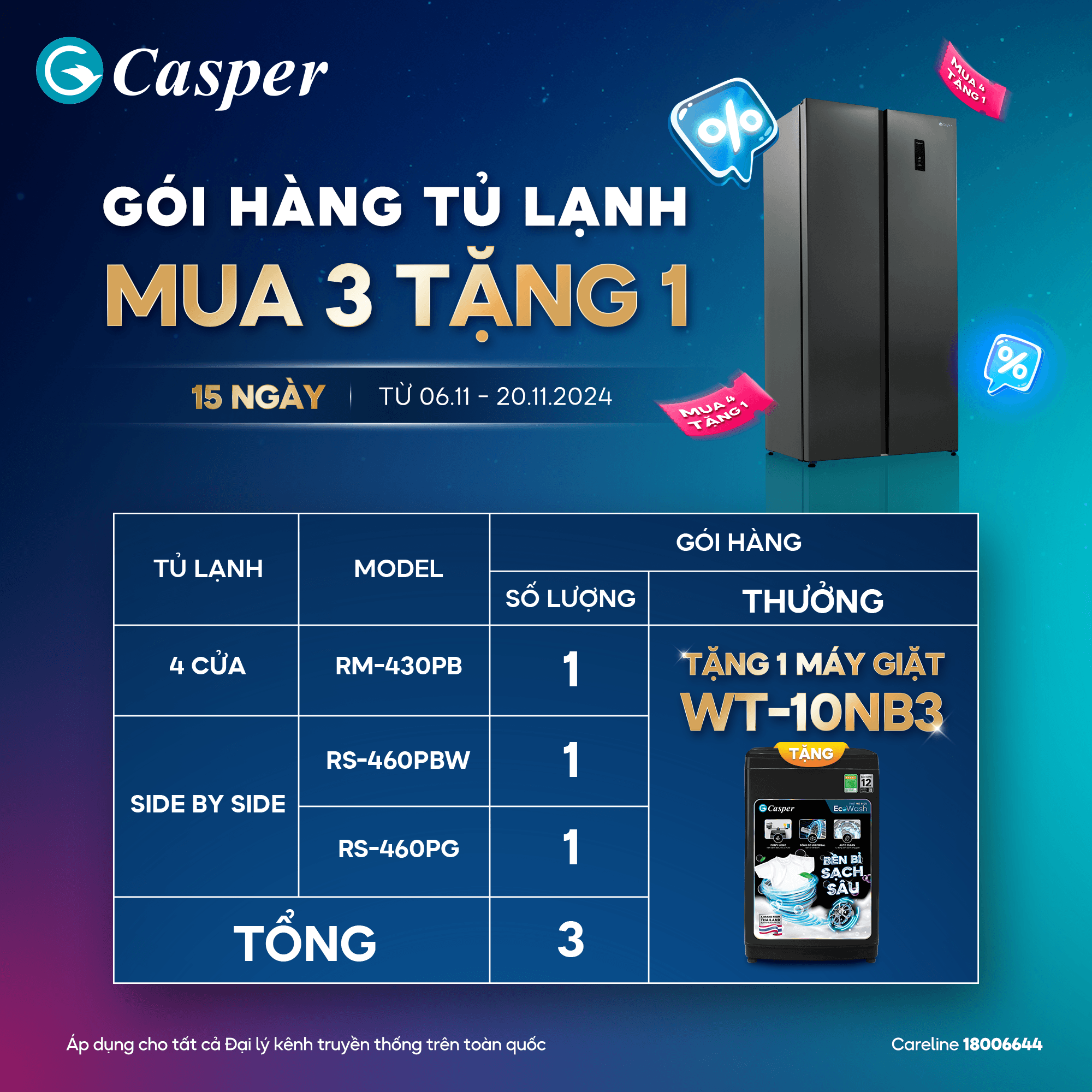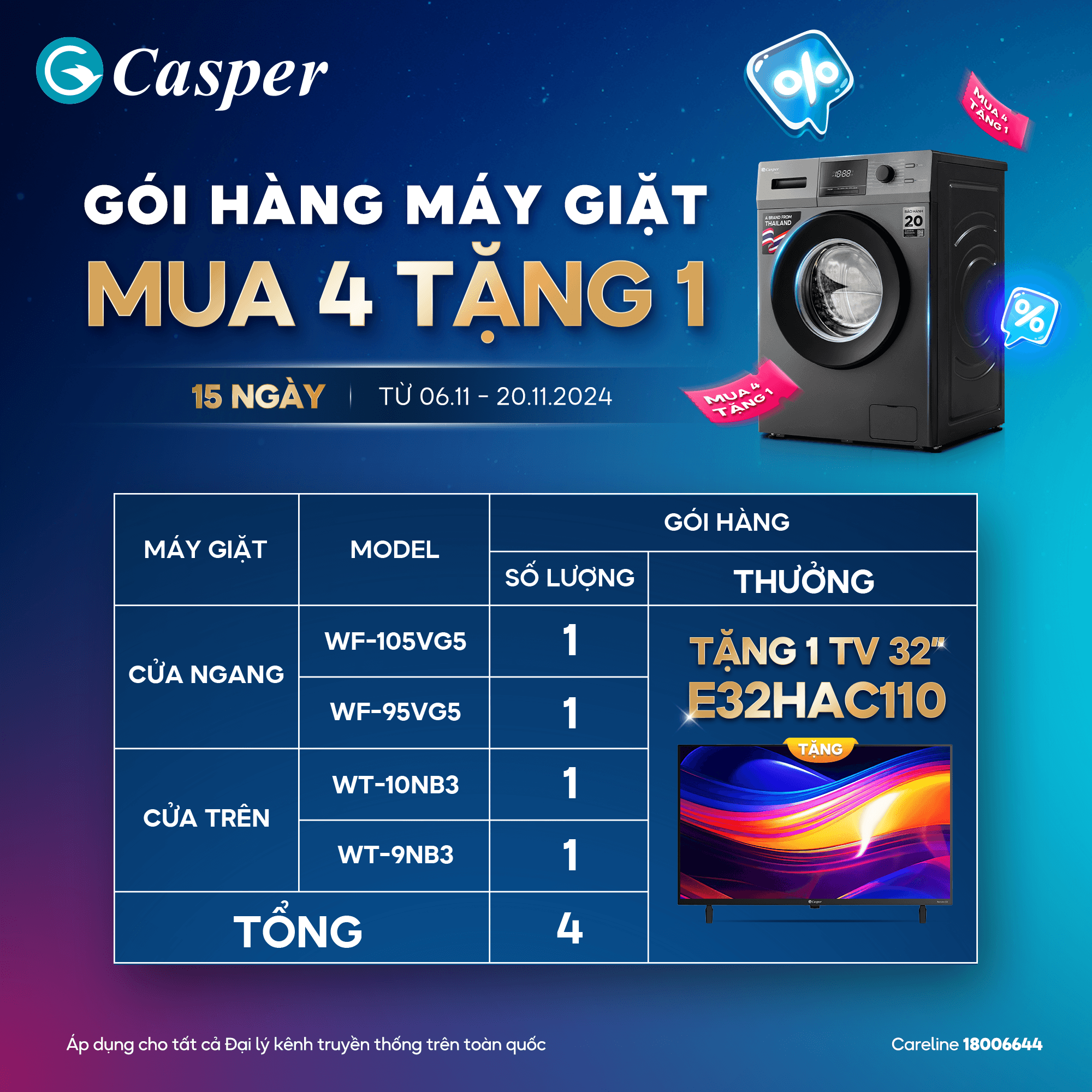Casper Vietnam xin gửi tới quý khách gói hàng với ưu đãi dành Máy Giặt & Tủ Lạnh như hình ảnh phía dưới.