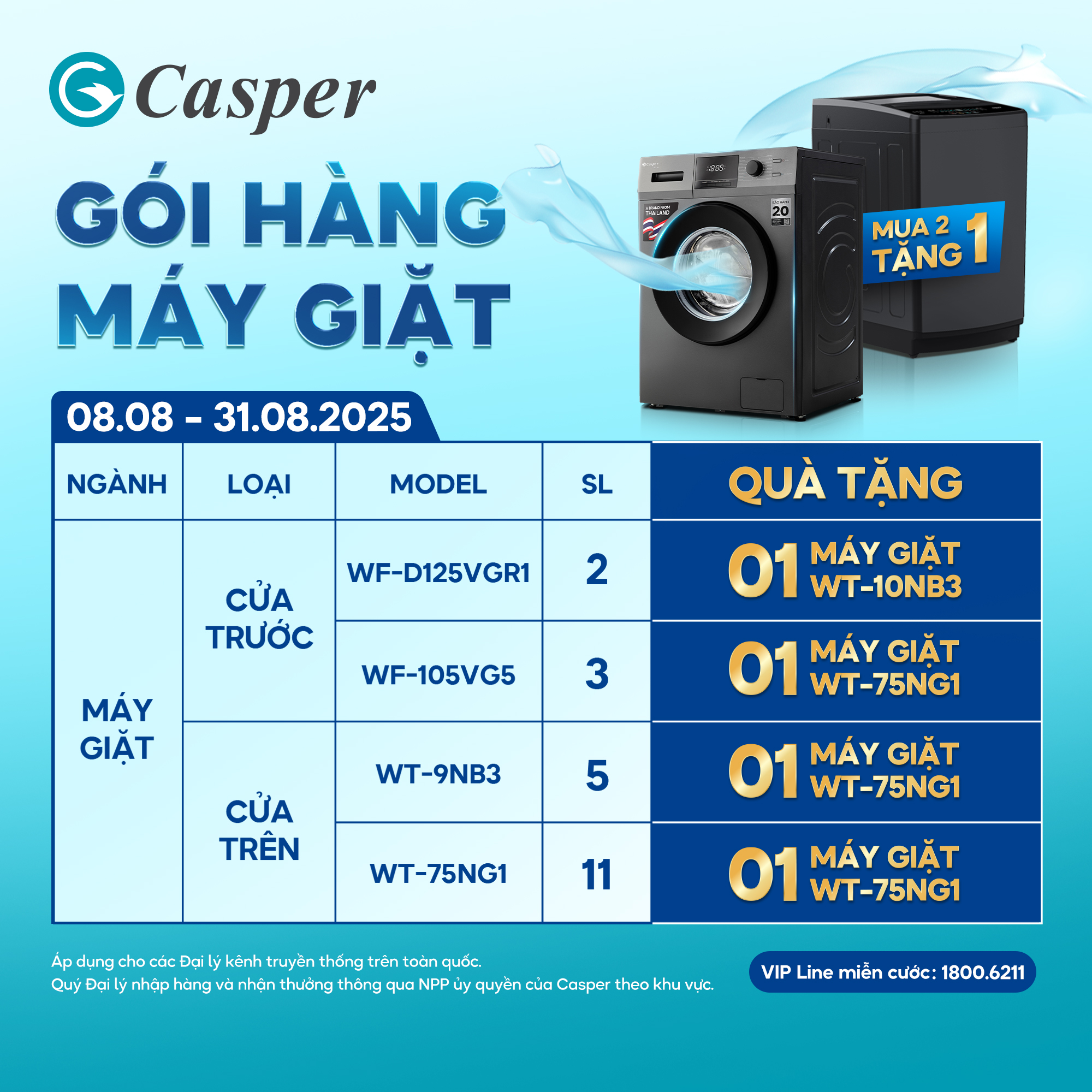 Casper Vietnam xin gửi tới quý khách hàng Chương trình ngành Máy giặt, áp dụng cho cả dòng Máy giặt cửa trước và Máy giặt cửa trên.