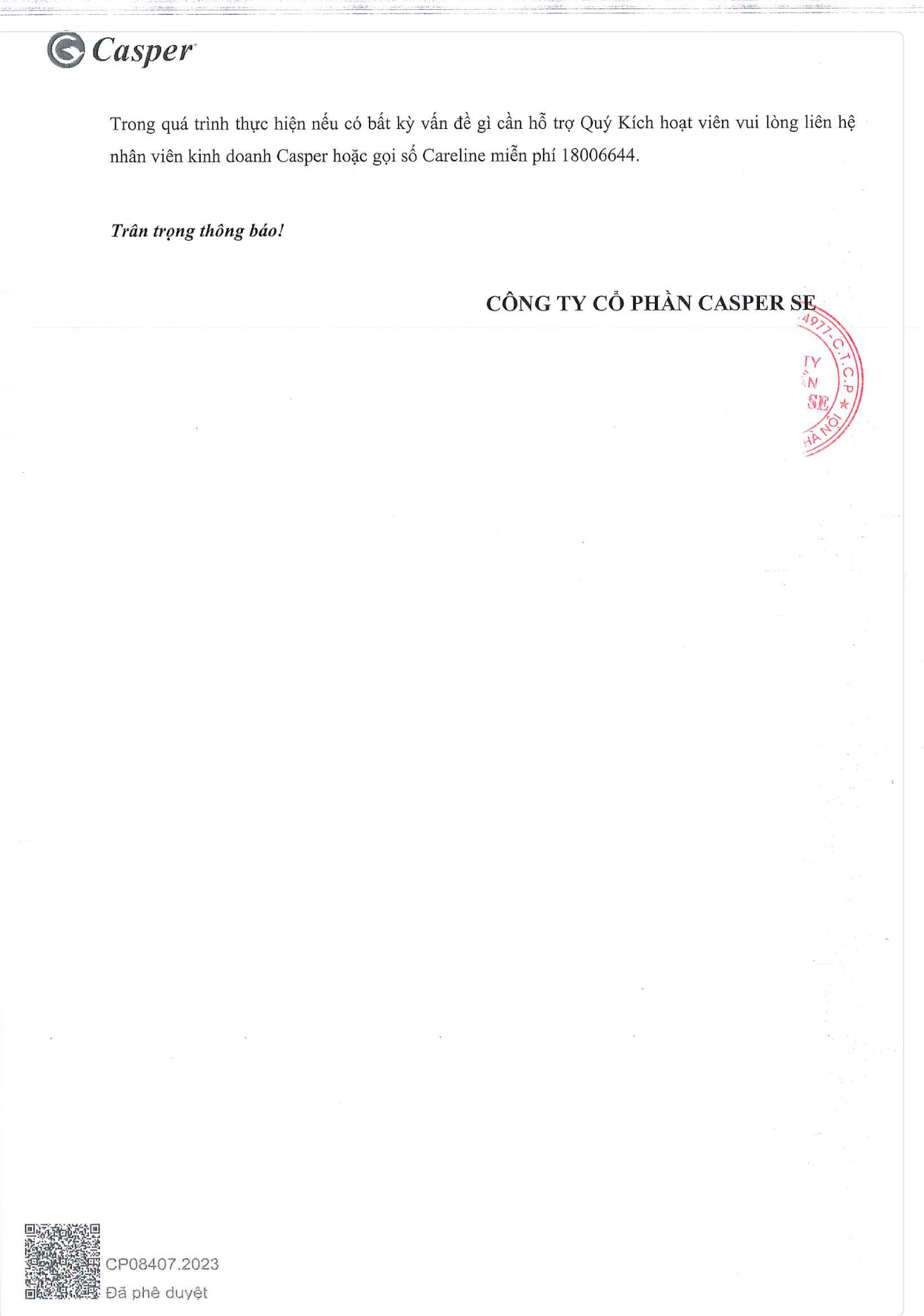 Kính gửi: Quý Kích hoạt viên sản phẩm Casper