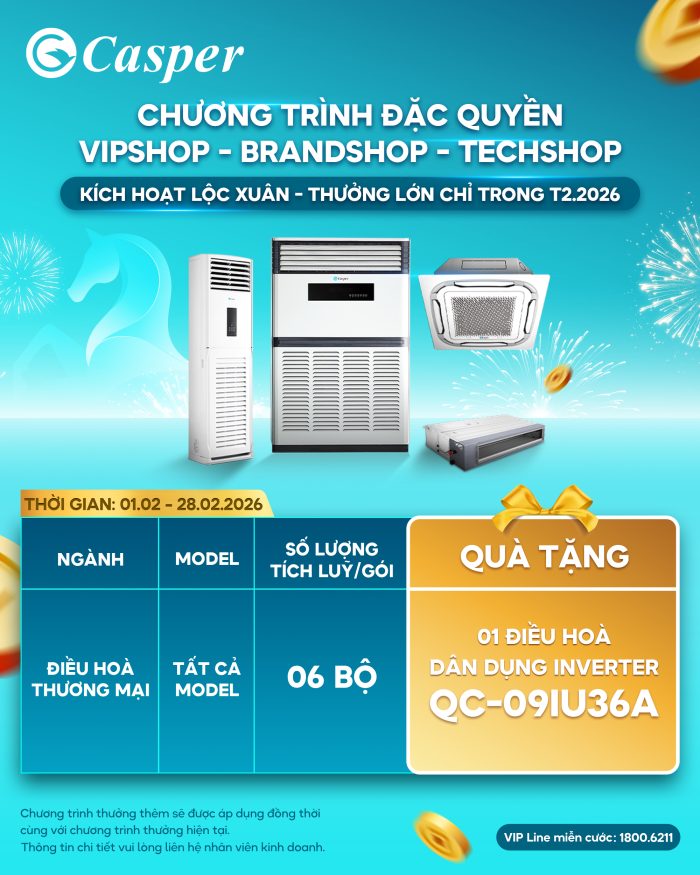 Chào Xuân Bính Ngọ 2026, Casper Vietnam xin gửi tới quý khách hàng thông tin tăng thưởng kích hoạt bán hàng, áp dụng đối với ngành hàng Điều hoà thương mại