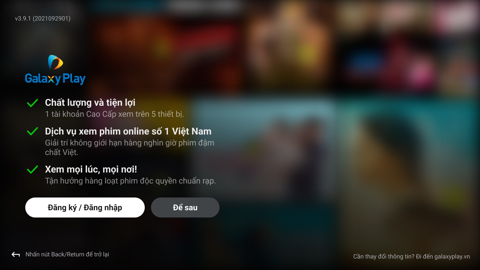 Bước 2: Đăng nhập tài khoản Galaxy Play của bạn hoặc đăng ký tài khoản mới. Sử dụng thiết bị di động và thực hiện theo các bước trên màn hình TV.