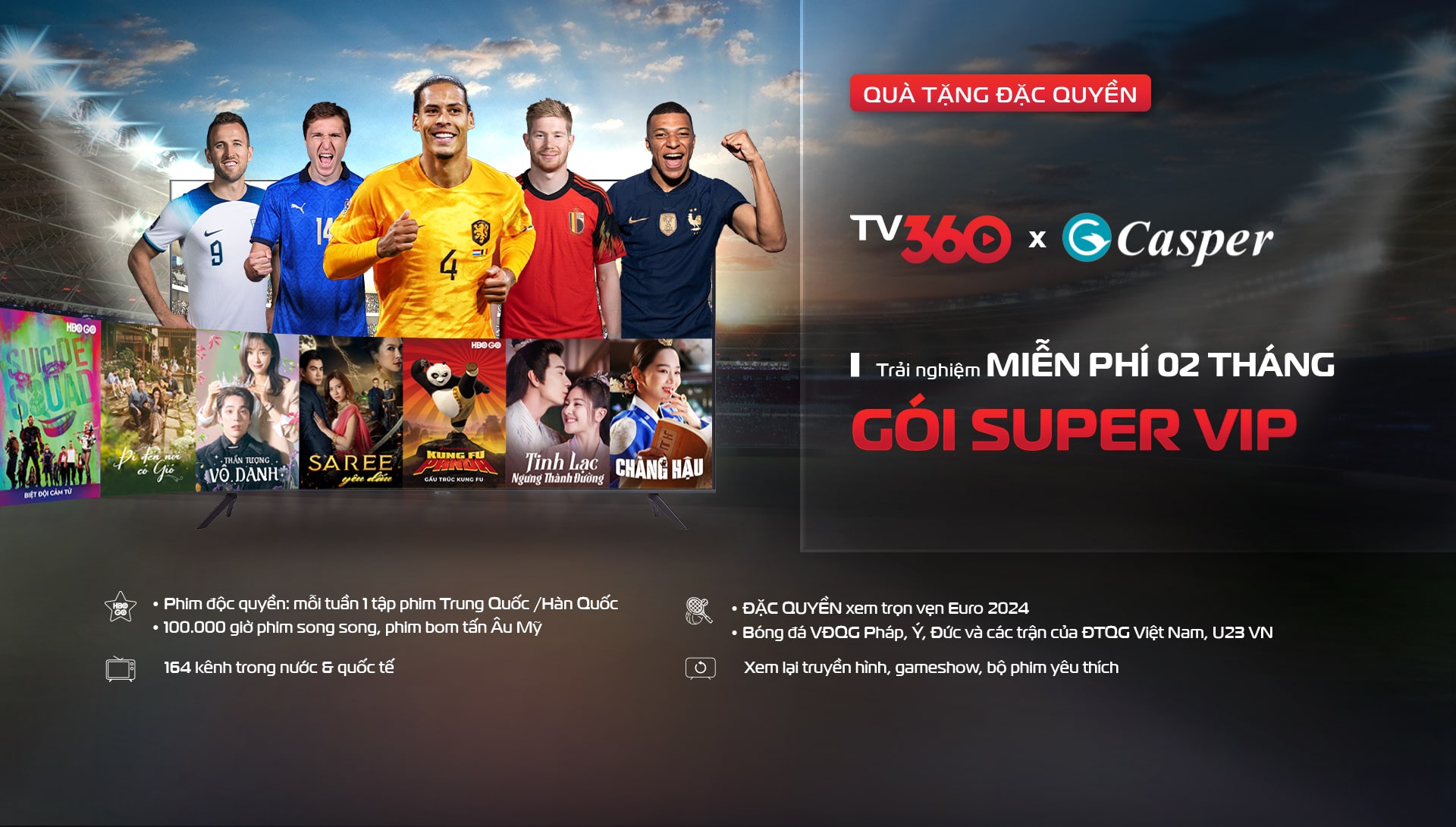 Khách hàng sử dụng TV Casper mới có thể nhận ưu đãi trong thời gian từ ngày 15/6/2024 đến hết ngày 26/6/2025.