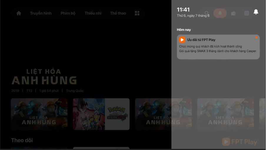 Bước 4: Màn hình hiển thị kích hoạt gói SMAX 3 tháng FPT Play thành công trên Smart TV Casper