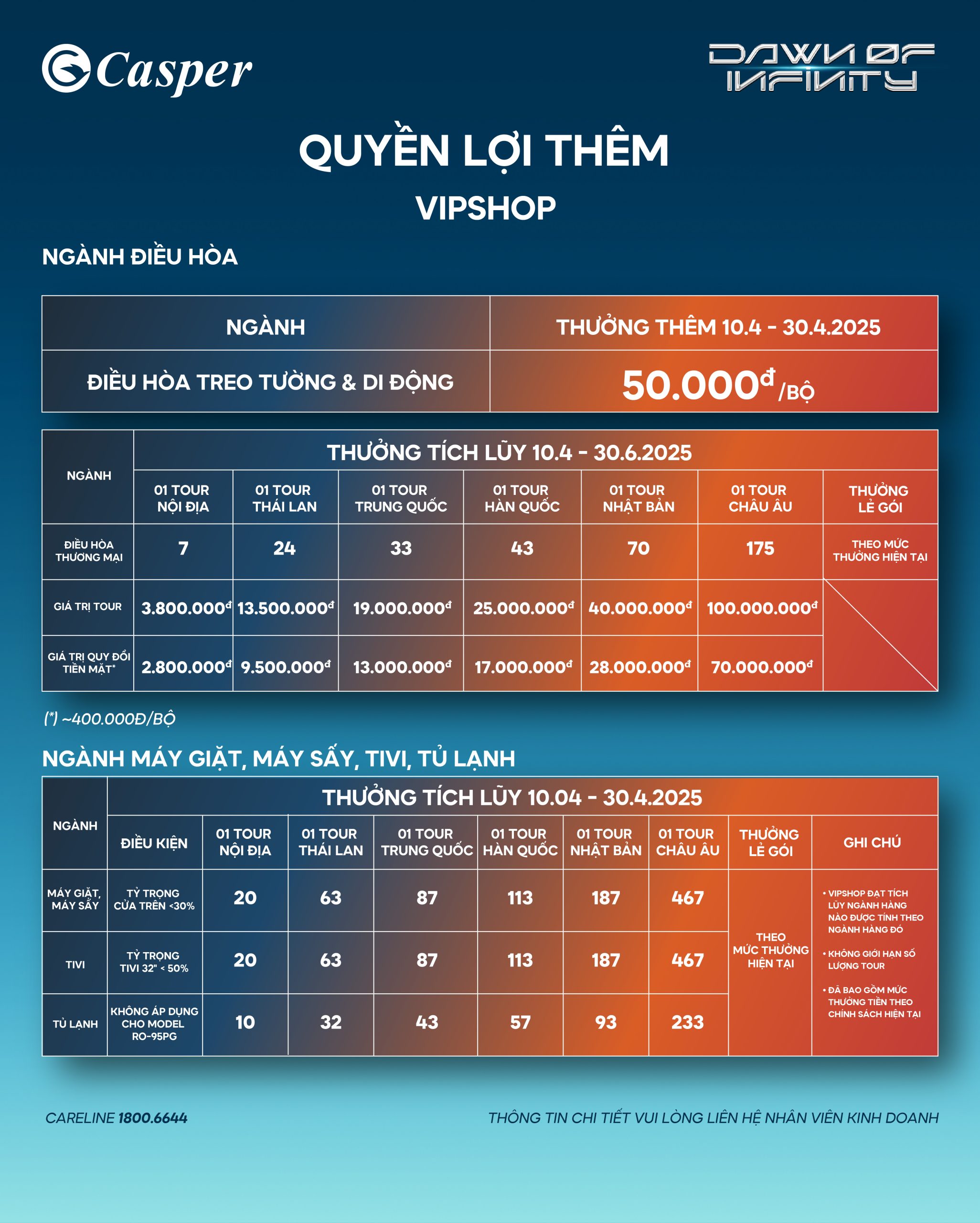 - Mức thưởng thêm được cộng thêm trên mức thưởng theo “Thông báo Chính sách hội viên VIP Shop Casper” năm 2025