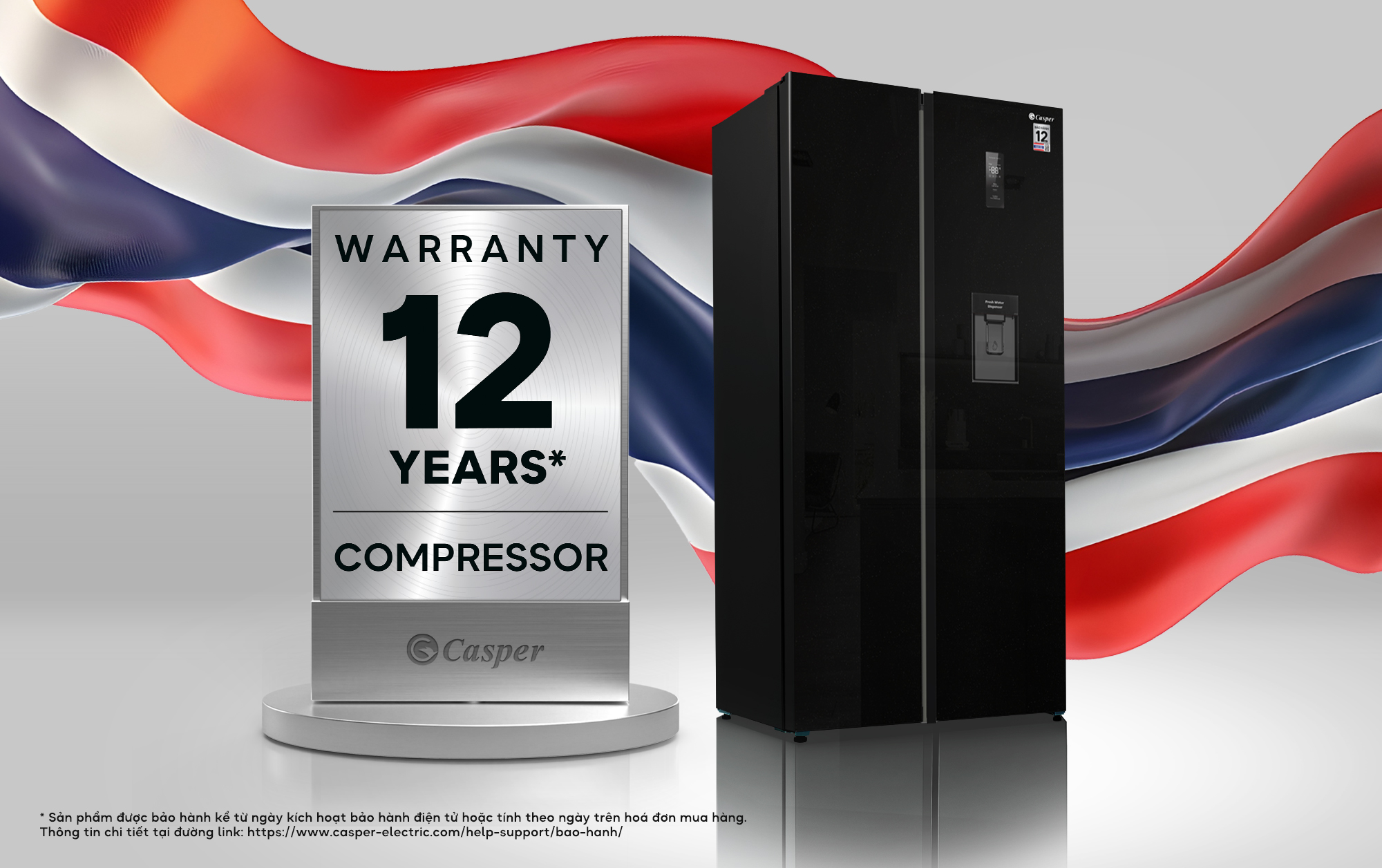 12 năm (tính từ ngày mua)* * Sản phẩm được bảo hành kể từ ngày kích hoạt bảo hành điện tử hoặc tính theo ngày trên hoá đơn mua hàng. Thông tin chi tiết tại đường link: https://www.casper-electric.com/help-support/bao-hanh/