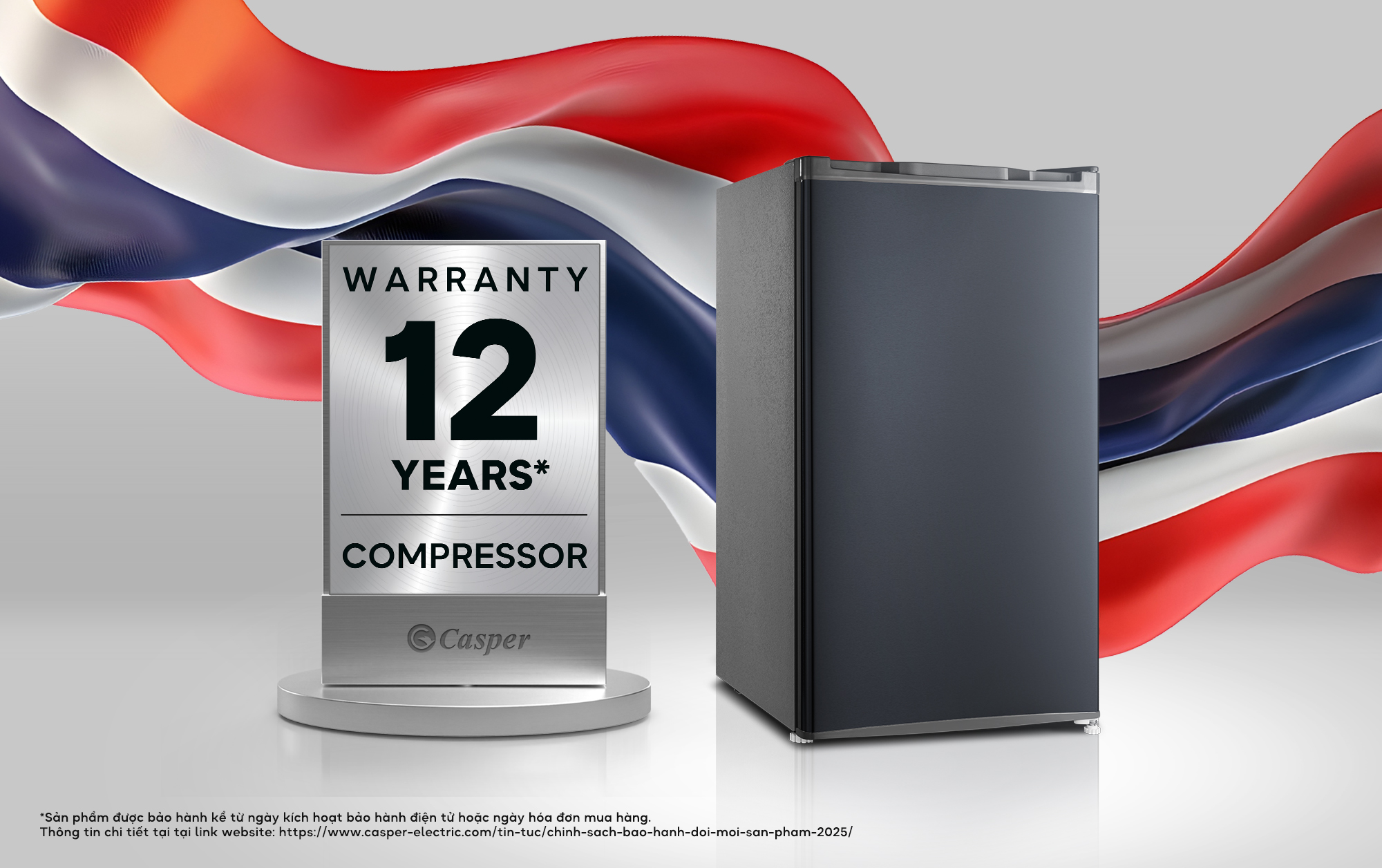 12 năm (tính từ ngày mua)* * Sản phẩm được bảo hành kể từ ngày kích hoạt bảo hành điện tử hoặc tính theo ngày trên hoá đơn mua hàng. Thông tin chi tiết tại đường link: https://www.casper-electric.com/help-support/bao-hanh/
